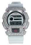 This custom iced out genuine G-Shock features the Z-Shock Mogul Series of Bezels. They are are a must for the person where details are important. The Mogul Series of Z-Shock Bezels are custom made and iced out with your choice of Ziamond Cubic Zirconia or genuine Diamonds. They can be ordered in Z-Shock's specialty Sterling Silver alloy with Platinum finish, Solid 14K white or Yellow gold and the Mogul Series can even be made in luxurious Platinum, all with OEM precision and a factory fit. Don't be fooled by other blinged out G-Shocks, many are made by hobbyists or one time atteptors. Z-Shock is the originator of the factory fit and provide a bezel that fits over the G-Shock in a professional manner. No rig jobs here.